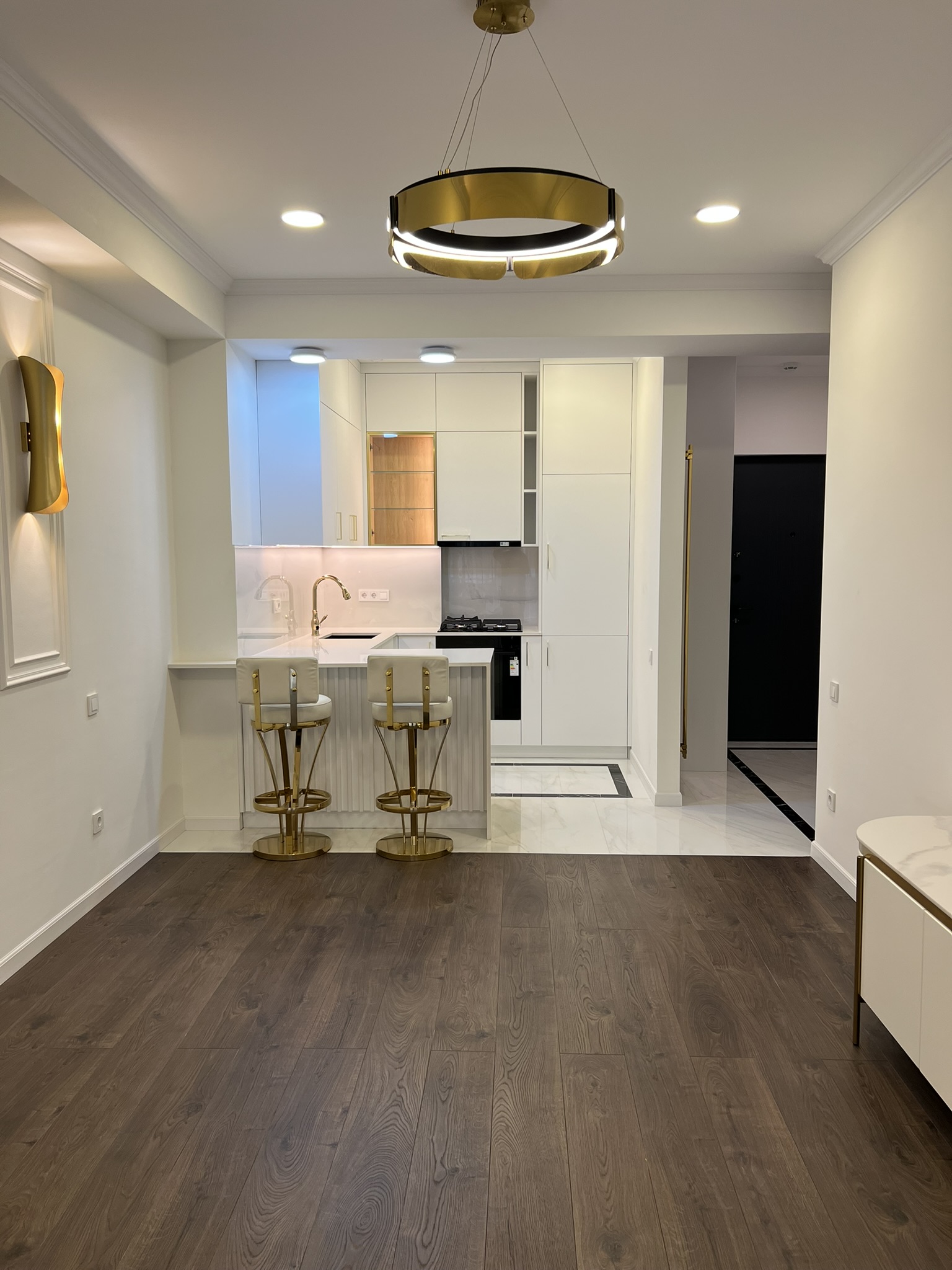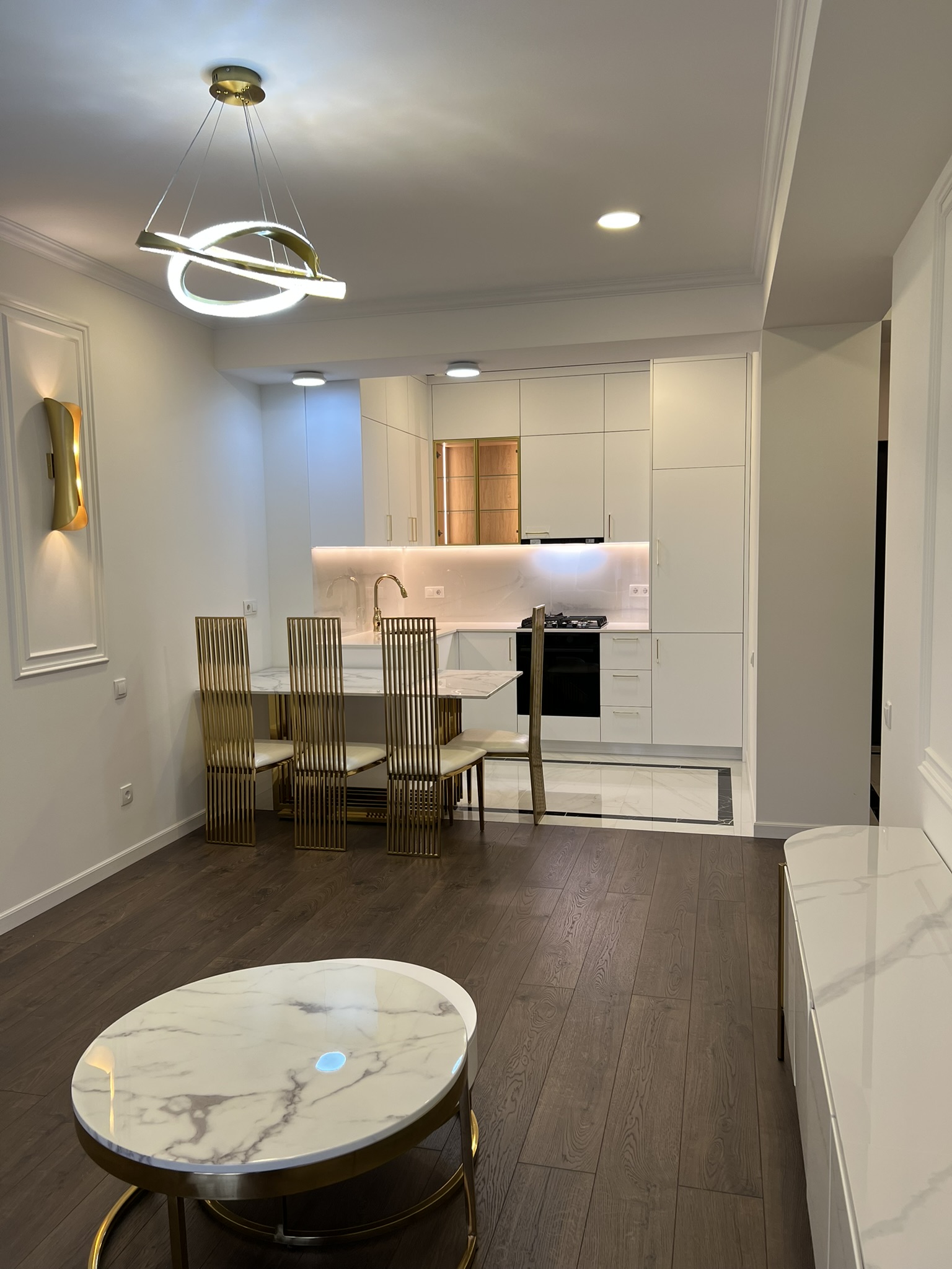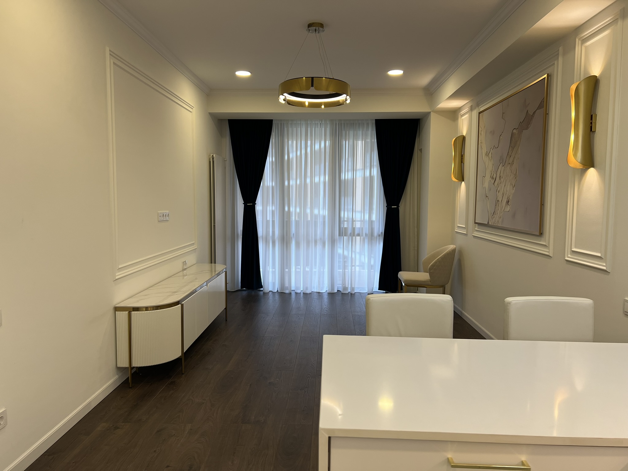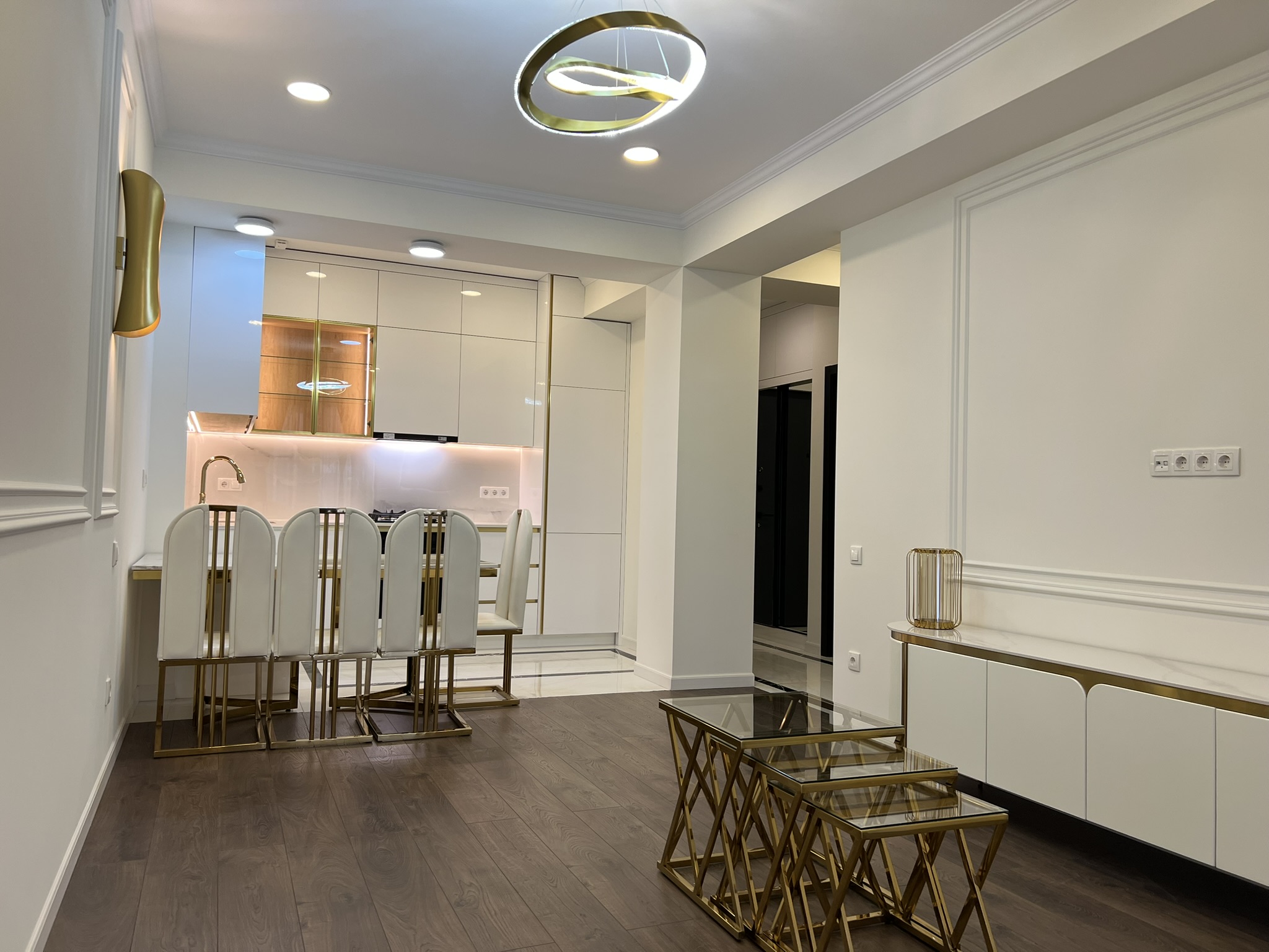 ბინა არის უცხოვრებელი, გამოყენებულია უმაღლესი ხარისხის მასალები (გერმანული ლამინატი, ესპანური მეტლახი და სხვა..), ბინა გაწყობილია ავეჯით და ტექნიკით, სამზარეულო არის ჩაშენებული ტექნიკით, ჭერზე და კედლებზე არის ორიგინალური განათებები, ბინაში არის ავეჯის და ტექნიკის სრული კომპლექტები ყველა დეტალის გათვალისწინებით, ულამაზესი, გემოვნებიანი დიზაინი შეხამებულია ძალიან მაღალ ხარისხთან.