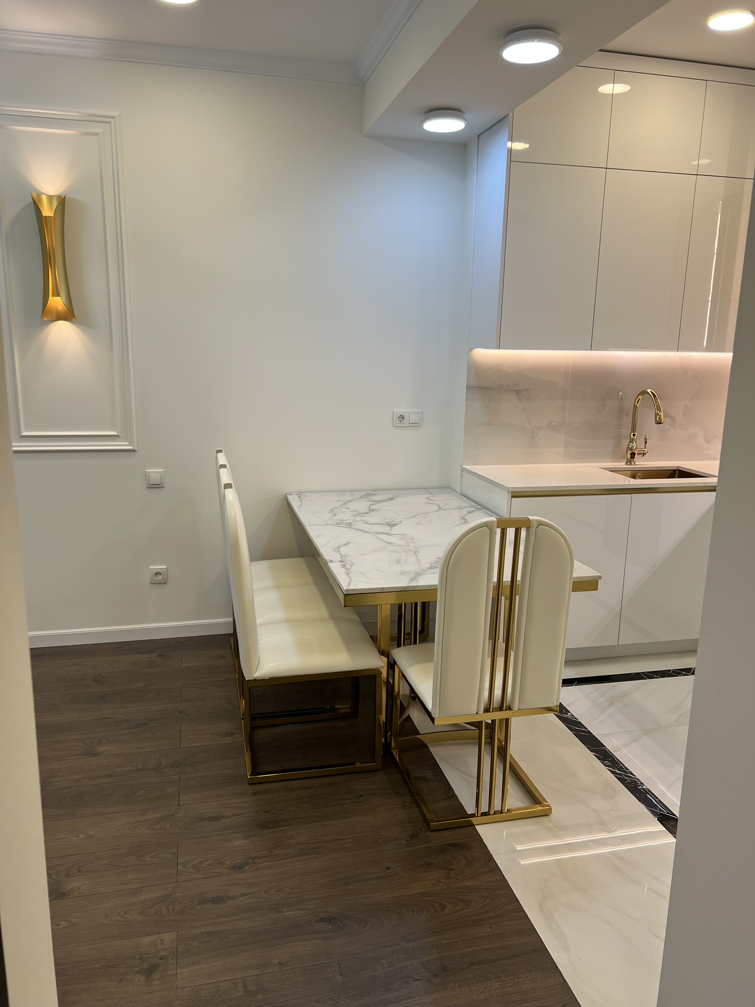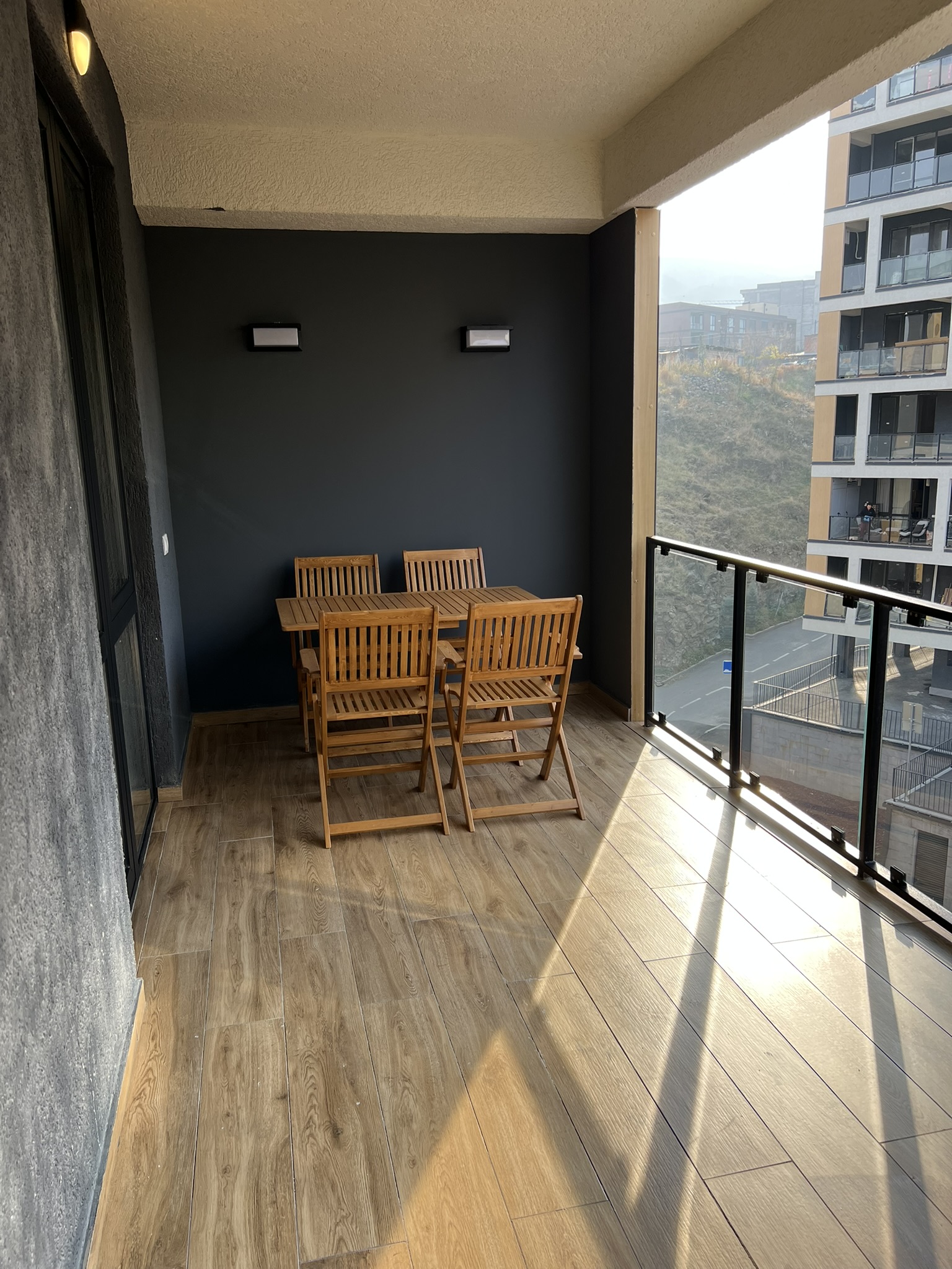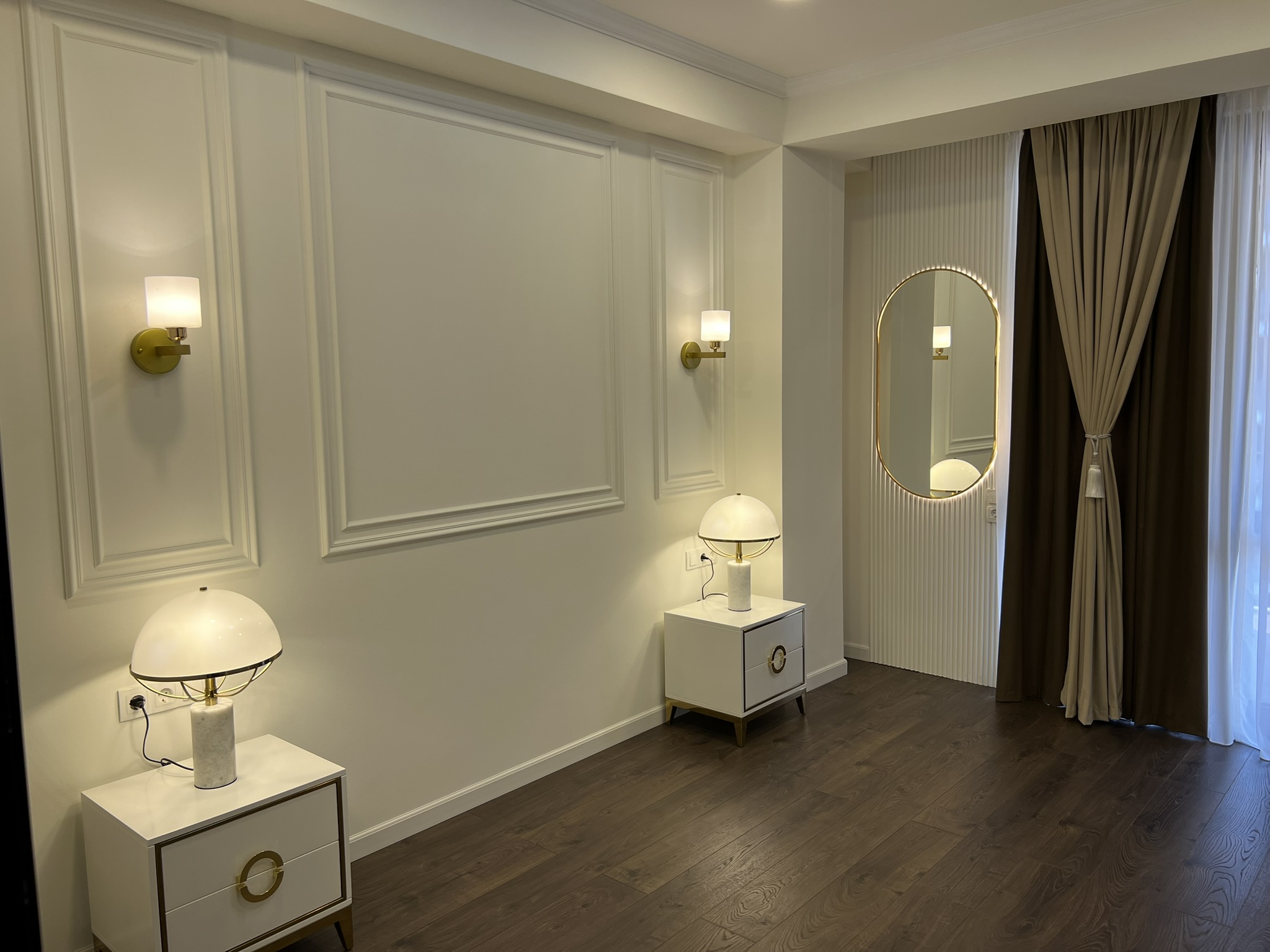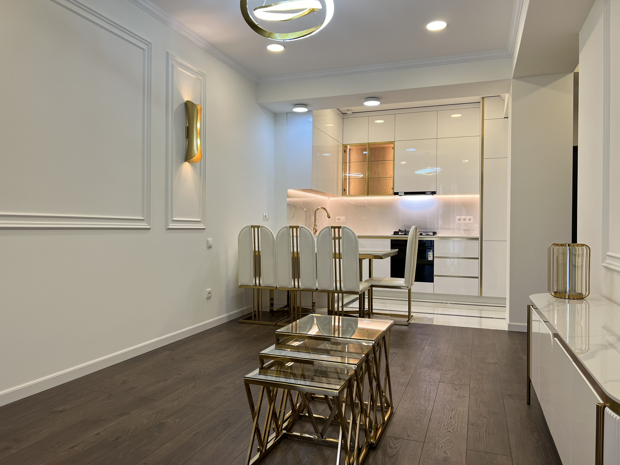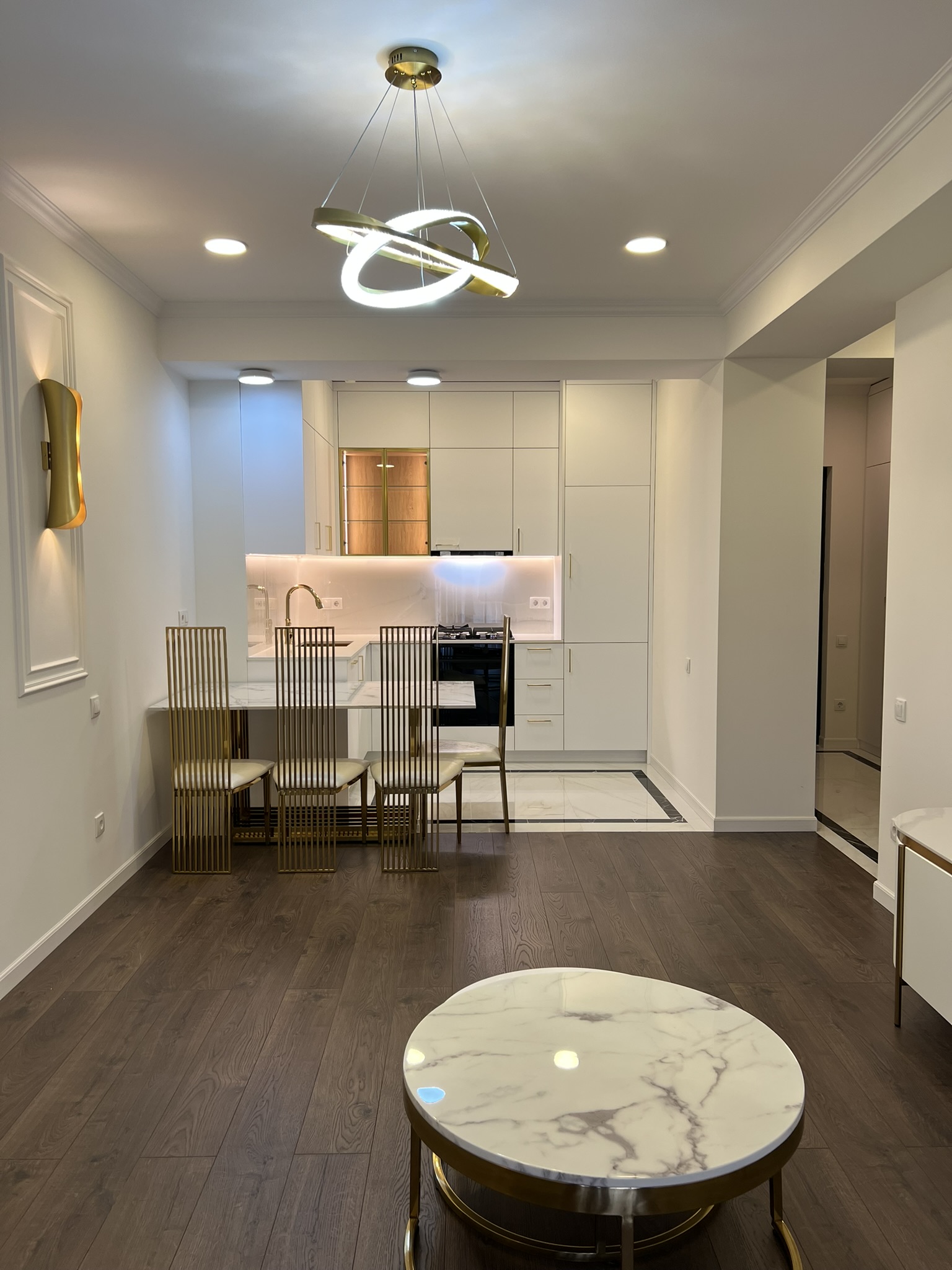 ბინა არის უცხოვრებელი, გამოყენებულია უმაღლესი ხარისხის მასალები (გერმანული ლამინატი, ესპანური მეტლახი და სხვა..), ბინა გაწყობილია ავეჯით და ტექნიკით, სამზარეულო არის ჩაშენებული ტექნიკით, ჭერზე და კედლებზე არის ორიგინალური განათებები, ბინაში არის ავეჯის და ტექნიკის სრული კომპლექტები ყველა დეტალის გათვალისწინებით, ულამაზესი, გემოვნებიანი დიზაინი შეხამებულია ძალიან მაღალ ხარისხთან.